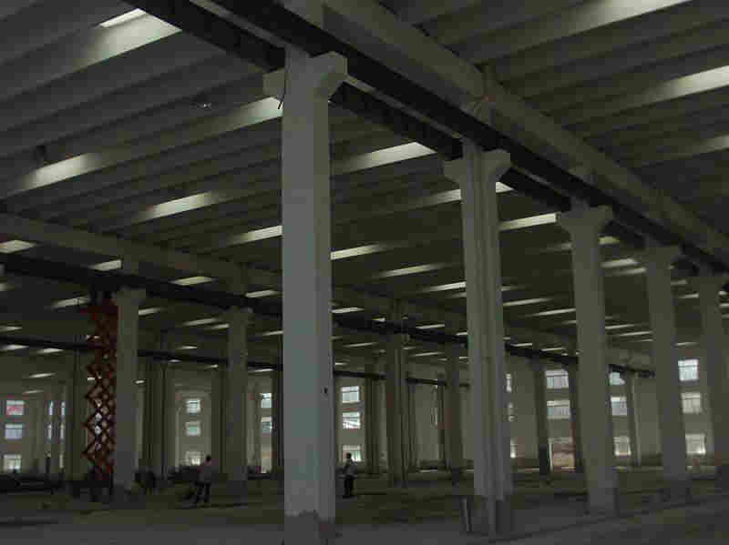 工程应用实例【工程概况】某工厂一期主厂房共有7层,建于1986年,建筑面积约11475m2,建筑高度约38.6m,结构平面呈矩形,长度105米,跨度18米,纵向柱间距7.5米,横向柱间距9米。厂房采用钢筋混凝土框架结构,基础采用桩基础,楼屋面板均为现浇钢筋混凝土板。