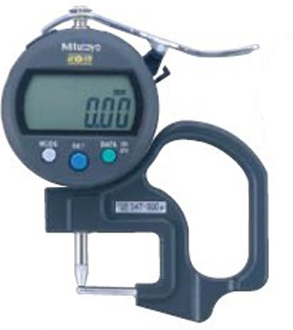 数字测厚表采用电子液晶显示屏,可原点设置,调零,GO/NG判定,自动开关等功能。数显厚度表的分度值也有二个系列0.01mm,0.001mm,规格则有12mm,10mm二个规格。三丰数显测厚表的型号主要有:547-401,547-301,547-321,547-313,547-315,547-360,547-400S,547-300S,547-320S,547-312S,547-316S,547-361S,547-500,547-520,547-512,547-516,547-516