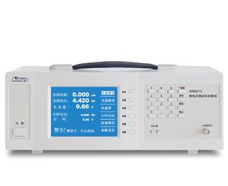 电压、电流、时间和电压谐波、纹波测量。 AN20015/耐电压测试仪校验仪主要特点: 完全符合《JJG795-2004耐电压测试仪规程》; 交/直流电压、电流±0.5%级测量精度,失真度、纹波系数±1.0%级精度 特有定时时间测量,电流大值保持、接地/浮地转换等功能,可兼容数字、模拟式耐电压测试仪; 高安全性设计,高压输入后置,高绝缘防护; 320×240兰光液晶显示,菜单式操作,数字键盘,使用简单方便; 选配计算机控制软件――耐电压测试仪校验系统,方便数据存储,证书打印。