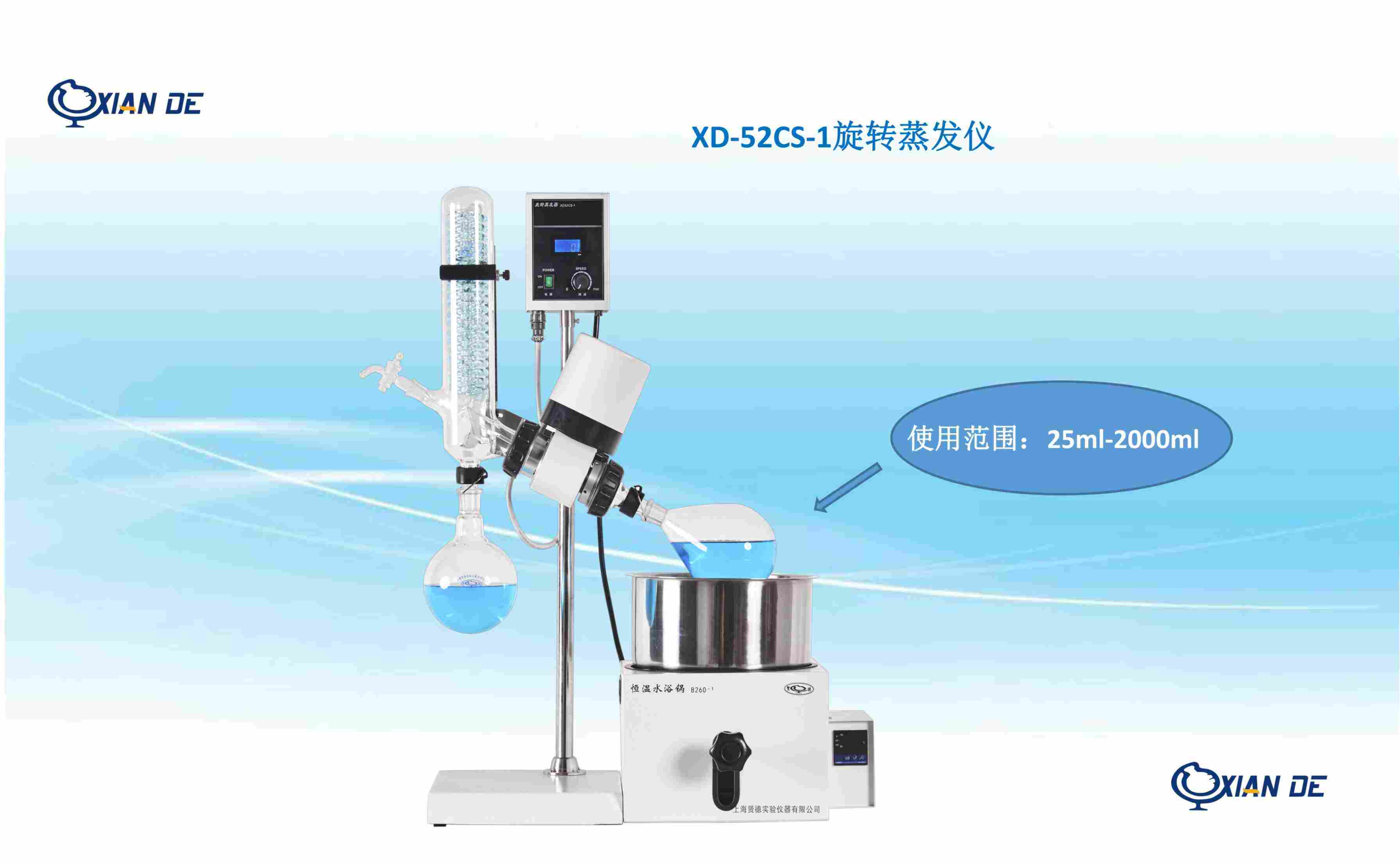XD-52型旋转蒸发器,主要金属件采用不锈钢,防锈铝合金,结构紧凑,外观精美,经久耐用,实用性强,密封系统采用氟胶+双重PTEF进口材料与玻璃转轴组合,不掉渣、耐磨延长了使用寿命,水浴锅温度范围为:室温-99℃。温度高于设定温度加热管自动停止加热。