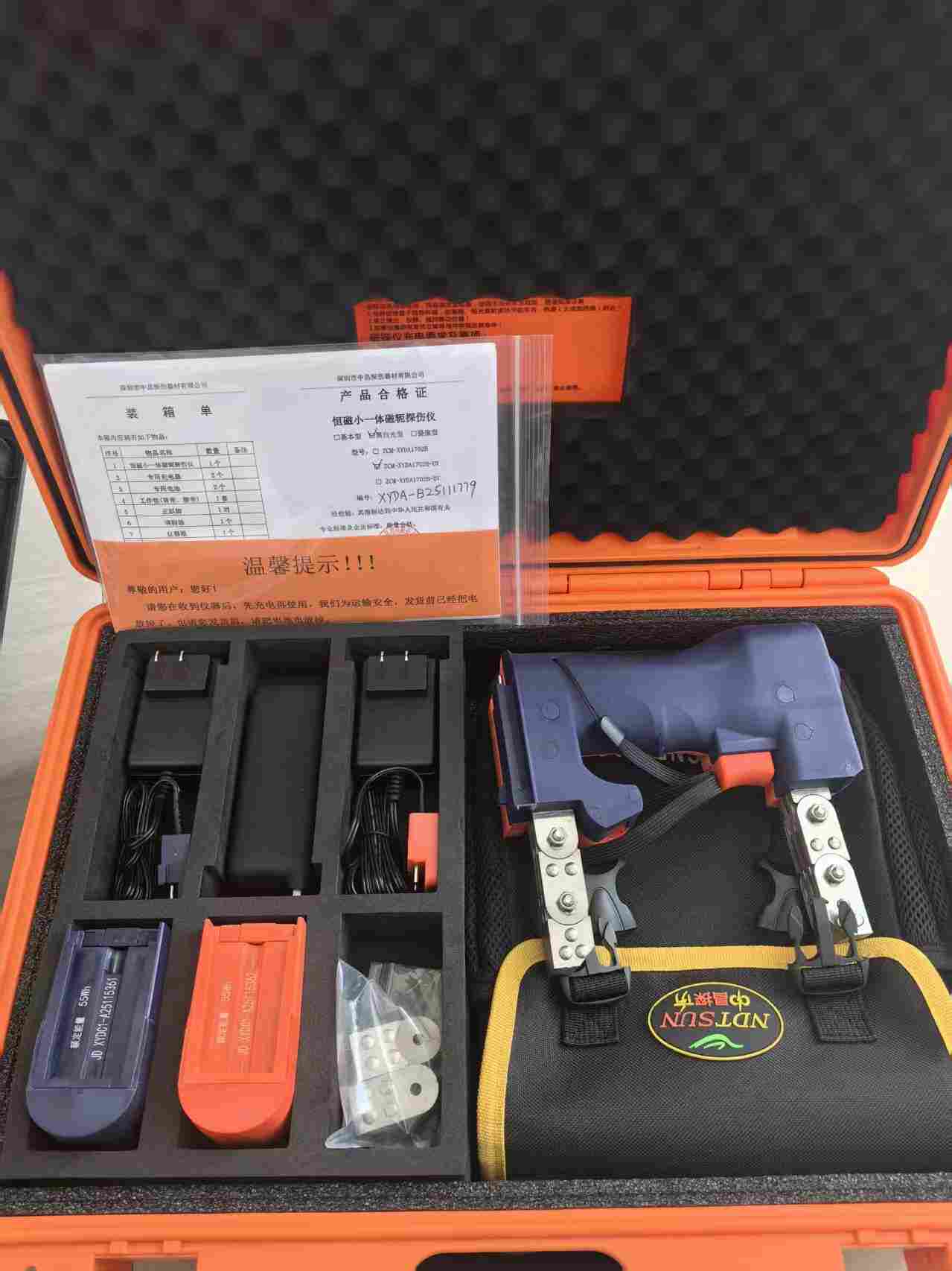 2.本产品无需外接电源即可产生稳定的交流磁场,保证检测灵敏度,磁粉探伤简单、方便、高效、安全。3.本产品集成有深圳中昌公司的产品一一逆变电磁场智能恒磁芯片,智能监测和动态调节电磁强度,使得电磁输出保持在*状态,保证了提升力和灵敏度不受电池电量的影响。保证检验质量。