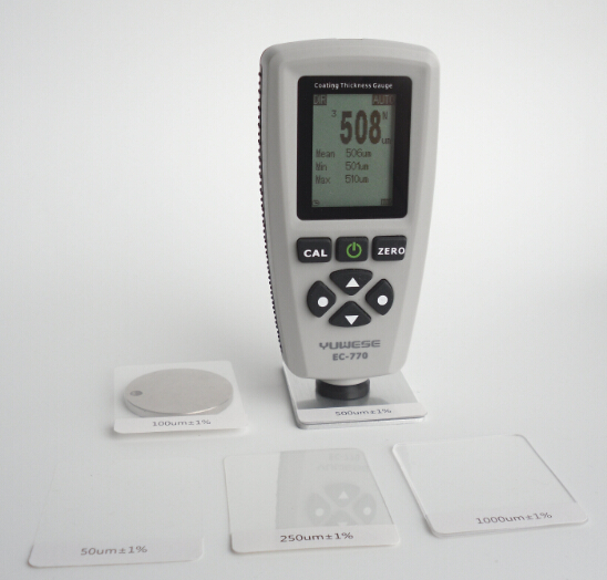 EC-770涂层测厚仪,能同时测量磁性基材表面(如钢、铁等)的非磁性涂镀层(如油漆、陶瓷、铬等),以及非磁性金属基材表面的非导电涂镀层(如油漆等)。本仪表内置高精密双探头,利用电磁感应和涡流效应,全自动探测基材属性,计算涂镀层厚度,并通过点阵液晶快速显示结果。同时,测量数据可分组保存,并实时显示统计值。用户可分别为每组设置上下限报警值、零校准、多点校准。全新的多点校准和零校准,让您非常方便的随时进行校准。标准化菜单,确保您非常容易的使用它。