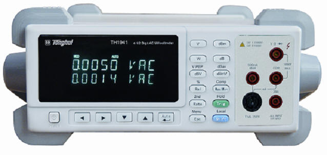 TH1912(5Hz—3MHz)型为4½位双VFD显示数字交流毫伏表,也可作功率计和电平表使用。能同时显示测量值及运算值。采用智能化微处理器控制技术、优良的放大器电路和A/D线性检波器使测量电压的固有误差优于1%。贴片生产及装配工艺使毫伏表具有体积小、重量轻、稳定可靠性高、测量速度快、频率响应误差小等优良性能。多种参数和数学运算设置功能,浮地和接地功能设置,扩大了毫伏表的使用范围,提高了测试的安全性. 仪器配备标准的RS232C通讯接口,同时可提供通用的通讯软件以满足您与计算机通讯,构建自动测试系统的需要。仪器接受SCPI(可编程仪器的标准命令)命令,以保证通讯软件的兼容性。