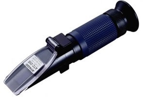手持式葡萄酒折射仪使用于测量发酵前酿造原料的浓度.测量方法简便只要将样品滴在菱镜透过接目镜读值就可以.我们有6种标度型号一共有12种.每种标度都有带自动温度补偿功能的和没有此功能的. 因为糖度或浓度会随着周围温度的高低而受影响.此功能可以将样品温度补偿20度而自动扣除此误差.