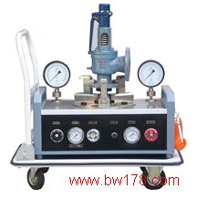 一、结构特点 1、本设备可以二人抬起装在小轿车后厢内,开展移动式现场服务。用于安全阀的定压校验和密封性测定。 2、本设备具有性能优越的快速气动夹紧结构,作业效率高,劳动强度低,准确可靠,并且可以兼作枱虎钳拆装安全阀。 3、更换压力表不用扳手,可直接手拧,并可调节视角,特别方便。 4、设备重量在70公斤左右,体积约为:70×45×51公分,另配手推小车一辆,可进入更狭窄的现场。 5、可校验法兰式、螺纹式安全阀。 二、技术参数 1、高导入压力15MPa(各档通径相应可校验高压力见下表) DN-mm PN-MPa DN3240506580100 PN.02.0 2、校验通径范围:法兰式DN32~100mm的安全阀、螺纹式″~ ″的安全阀。 3、校验精度高于1%。 4、介质为氮气或洁净压缩空气,介质源由用户自备。 本设备不宜用作校验其他阀门,需配安全阀成套研磨工具可另订