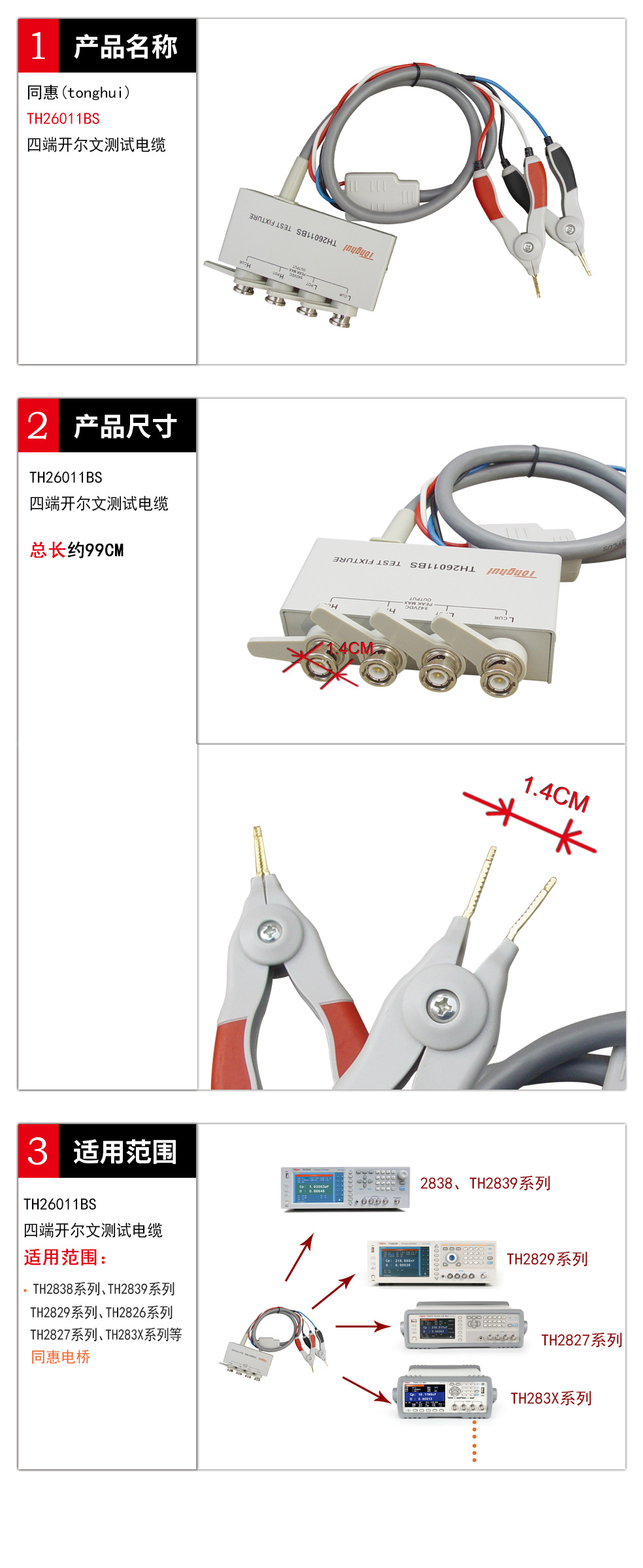 同惠(tonghui)TH26011BS 四端对开尔文测试电缆 TH26011BS