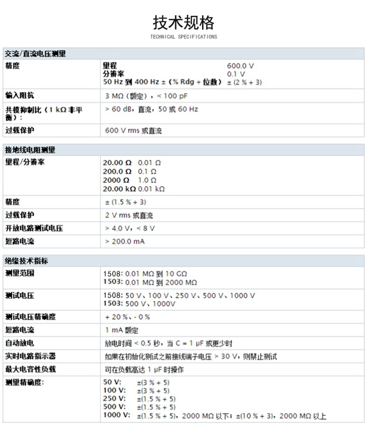 福禄克 FLUKE F1503 绝缘电阻测试仪 2000MΩ
