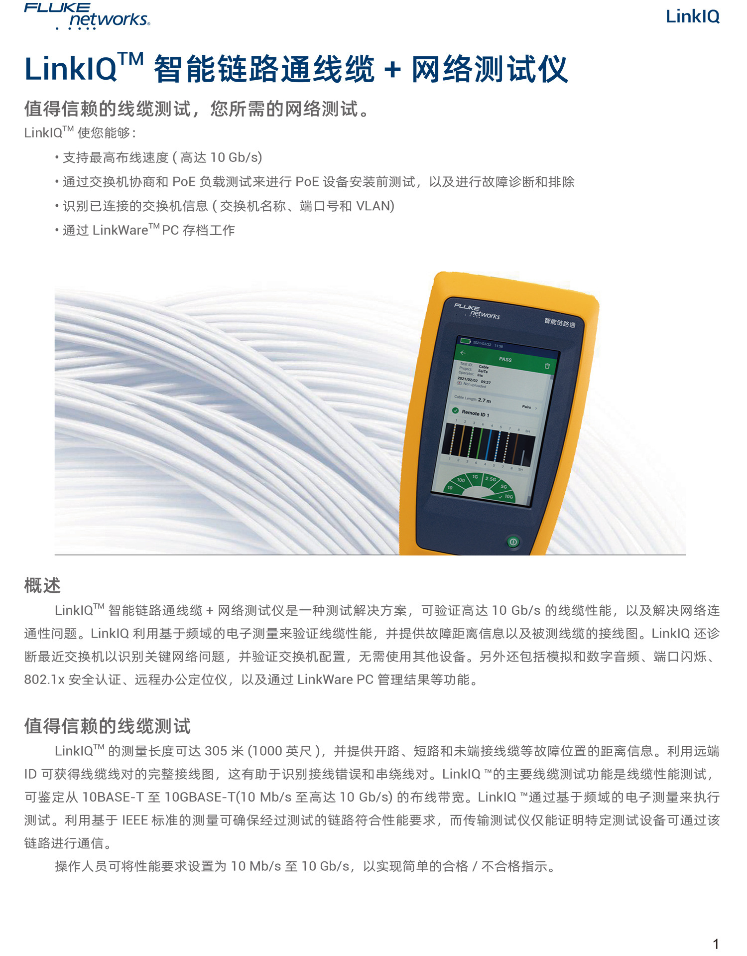 > FLUKE福禄克LinkIQ 智能链路通 线缆 网络测试仪
