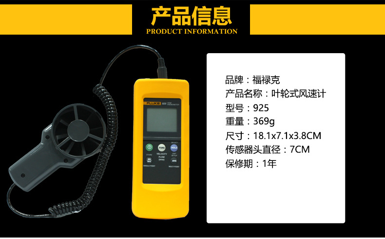 > 福禄克FLUKE F925 叶轮式风速测量仪
