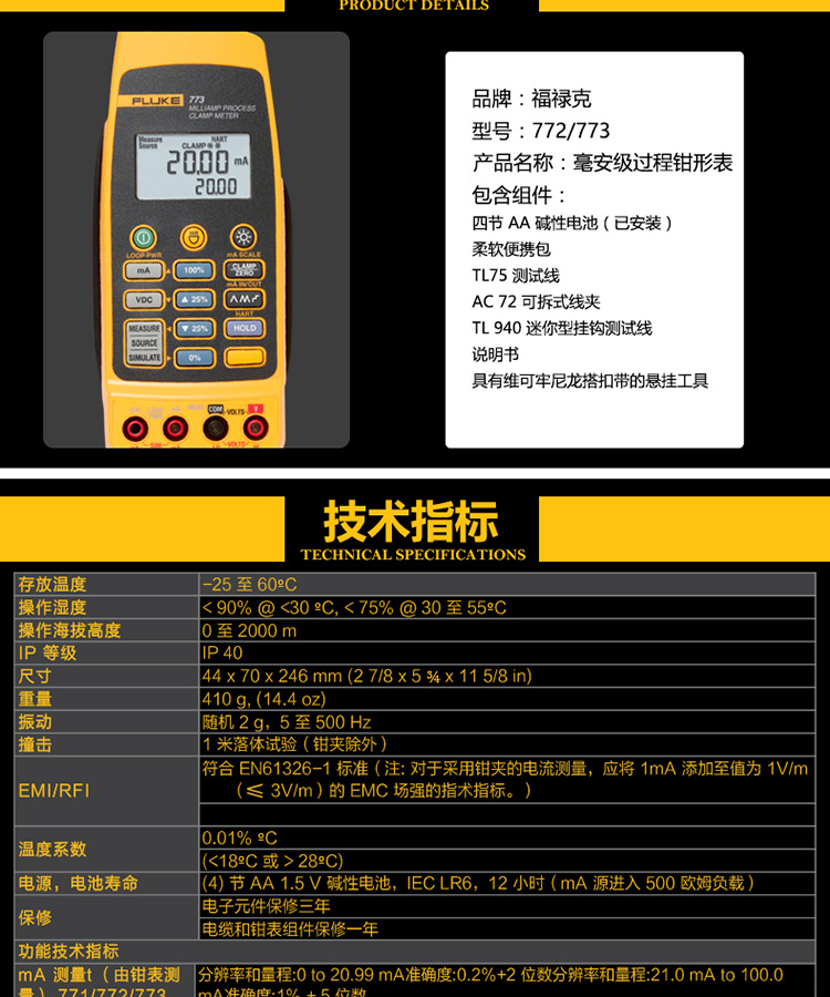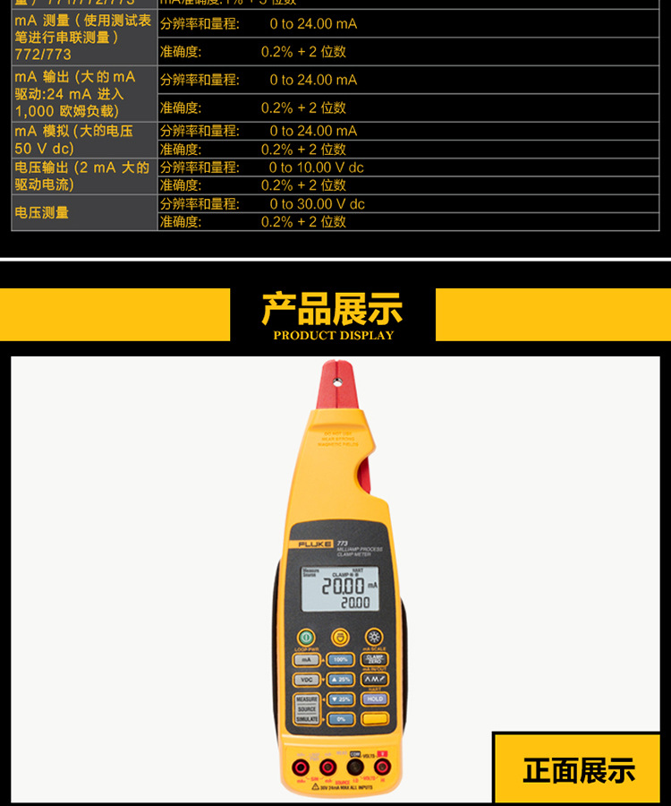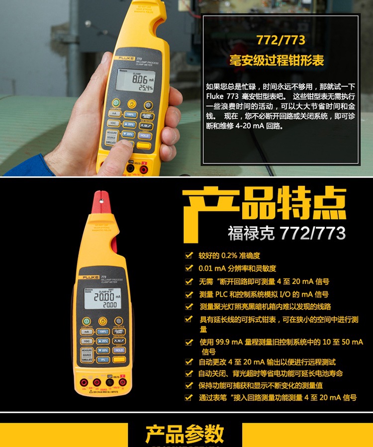 福禄克FLUKE773CHN 毫安级过程钳形表 F733