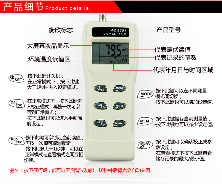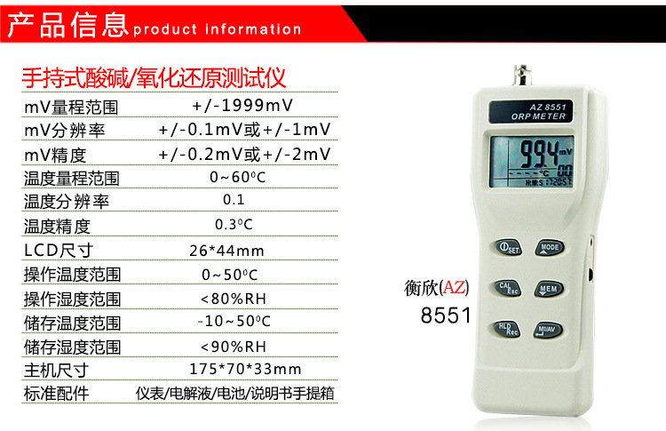 衡欣 AZ8551氧化还原电位计ORP水质检测仪