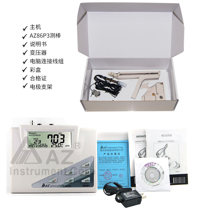 i 台湾衡欣AZ86501酸碱度计PH/mV/温度测试仪工业污水实验室