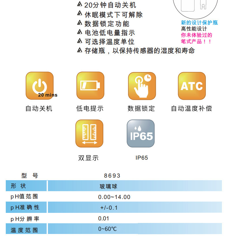 衡欣 AZ8693 酸碱PH计 实验室长管PH测试笔