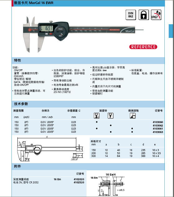 Mahr马尔数显卡尺4103004详细说明