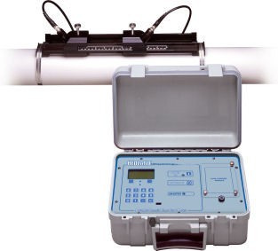 Hedland 便携式超声波流量计有两个探头,就像图一所示的A和B,他们的功能是发射和接受,传感器被钳在管道上,两者保持一定