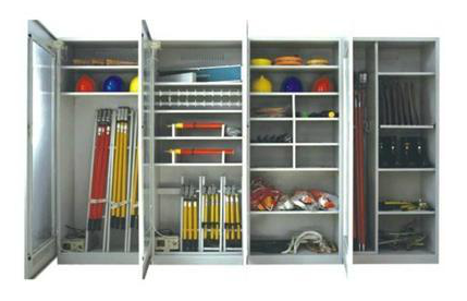 2、 可同时存放绝缘杆、验电器、接地线、绝缘手套、绝缘靴、安全带、防毒面具、绝缘绳、绝缘挡板、屏蔽服等工具用品,做到综合利用。