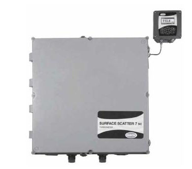 Surface Scatter 7 sc 是采用散射光监测原理的浊度仪。样品以每分钟1 至2 升的流速,流入倾斜的浊度计主体,液体溢出浊度计主体顶端的水平面,形成了平整的测量平面。一束强光束按某一角度射向液体表面,样品中的悬浮颗粒物发出散射光,放置在液体表面上方的检测器检测90 度的散射光。