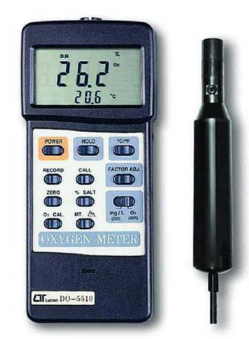 OXYGEN METER Model : DO-5510 * -P circuit LCD with display unit. * Dissolved oxygen range : 0 to 20 mg/L. * Max. Min. Memory recall button. * DO Oxygen in air Temp. ATC Auto Cal. % salt. * Diaphragms & electrolyte included. * Probe head with diaphragm set and electrolyte are included. * Size : 180 x 72 x 32 mm. RS-232