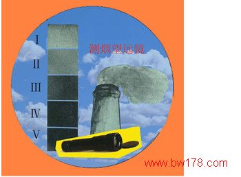 林格曼测烟望远镜,它把各国通用的标准林格曼烟气浓度图缩制在一块玻璃上,可对烟气黑度进行目测,对比从望远镜目镜中看到的林格曼图象,可以确定烟气的黑度。该仪器图像清晰,造形美观大方。