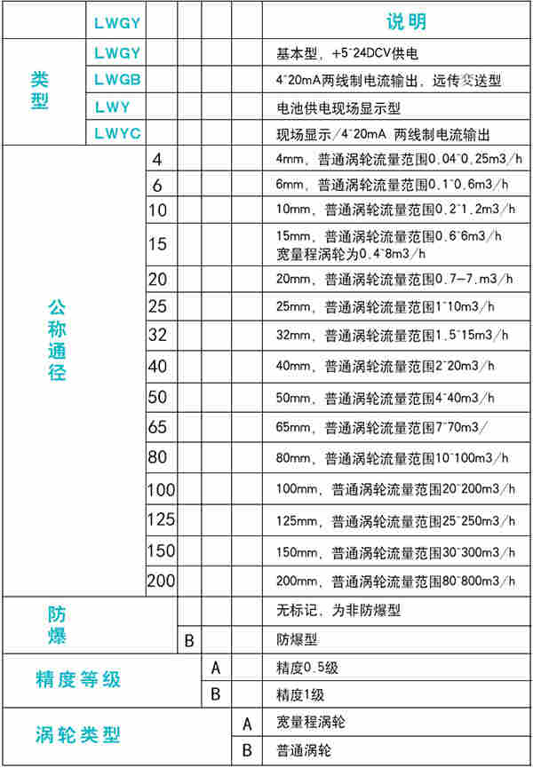 2、仪表口径(mm)及连接方式:4、6、10、15、20、25、32、40、50、65、80采用螺纹连接