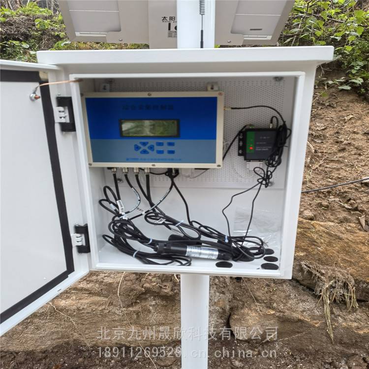将传感器内置于浮筒中,通过电缆连接到岸边支架内的信息采集仪,采集仪内置无线通信模块,可实时上传数据,采集仪由支架上安装的太阳能板供电。